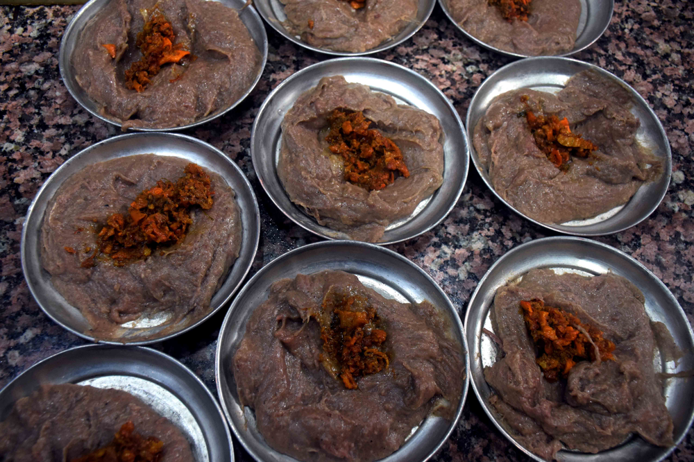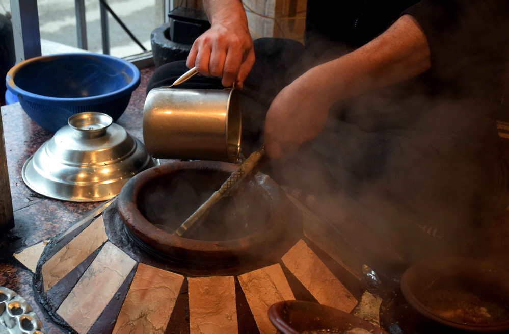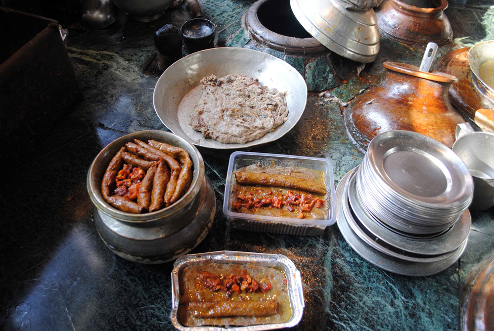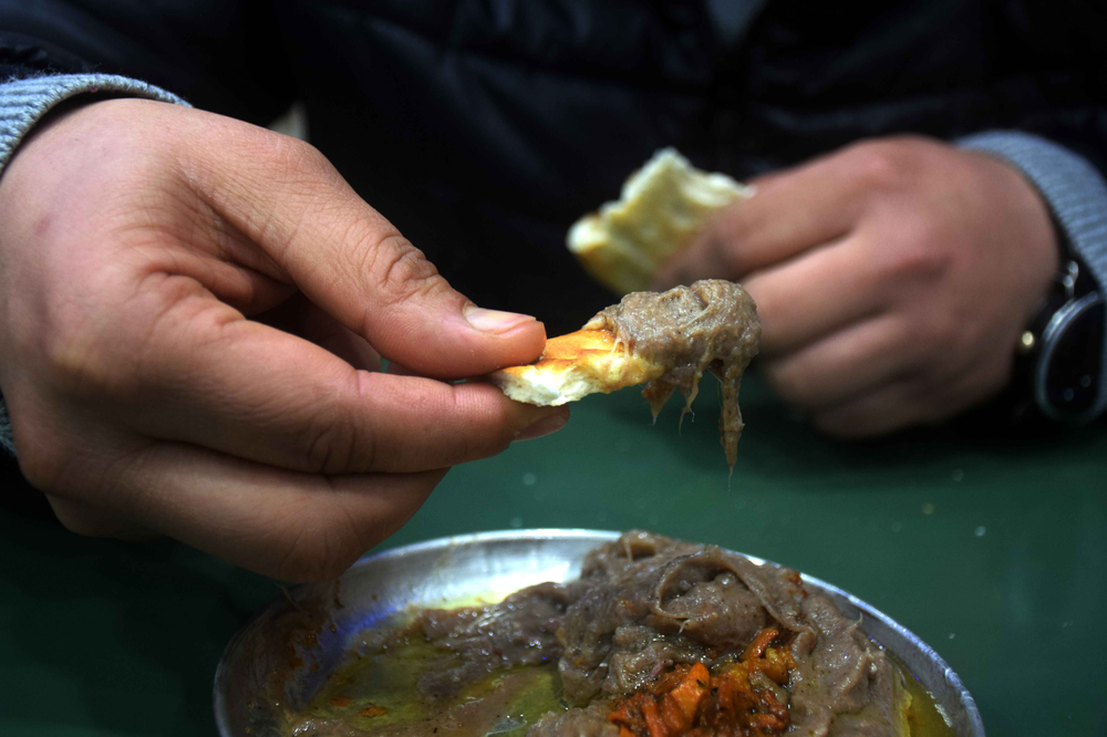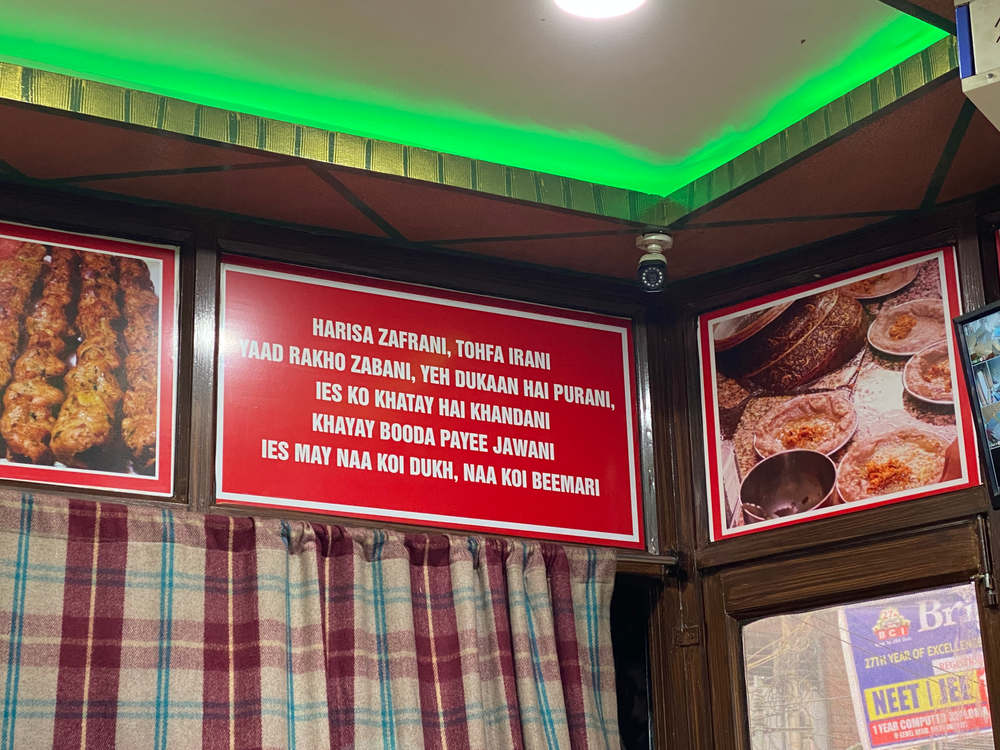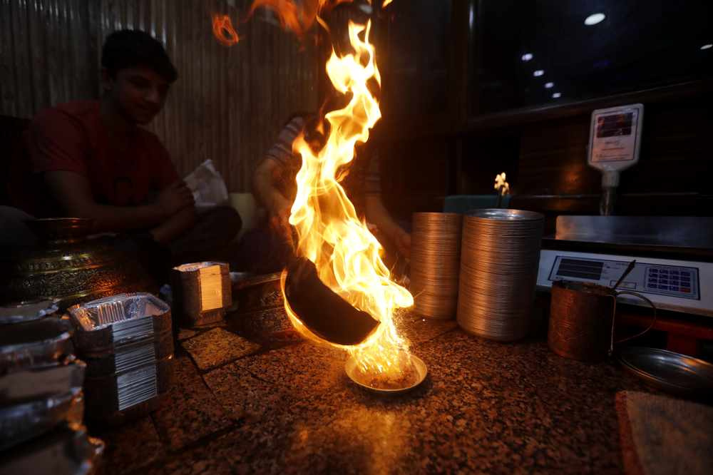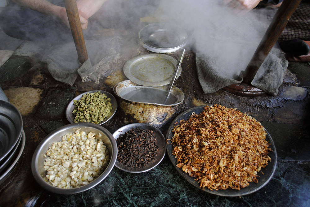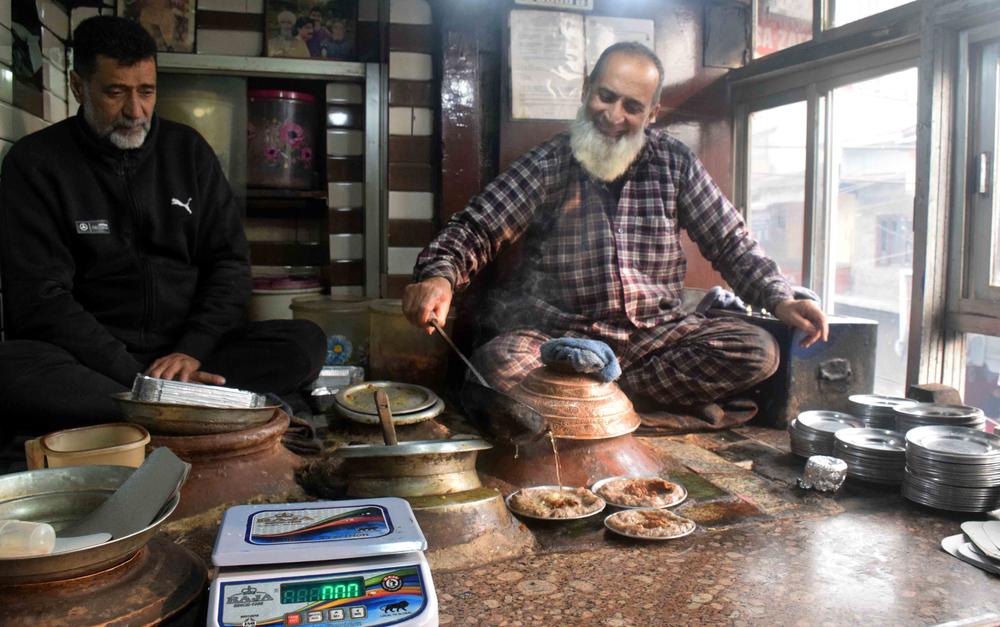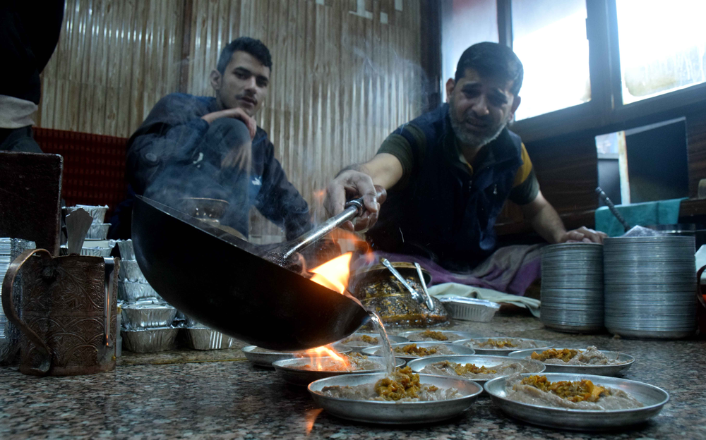 Harissa, not to be confused with the hot red chilli pepper paste (another version is with rose petals) of Maghreb (Tunisia, Morocco, Algeria and Libya), is a winter breakfast dish of Kashmir, perhaps more of just Srinagar. A few dozen harissa shops, mainly in old Srinagar, the downtown area or the Shehar-e-Khaas, begin a routine around October that lasts till March. This centuries-old delicacy is a must-have breakfast meal in the harsh winters of the valley.