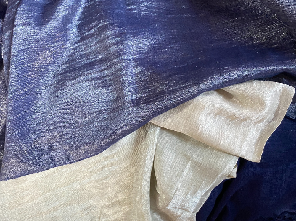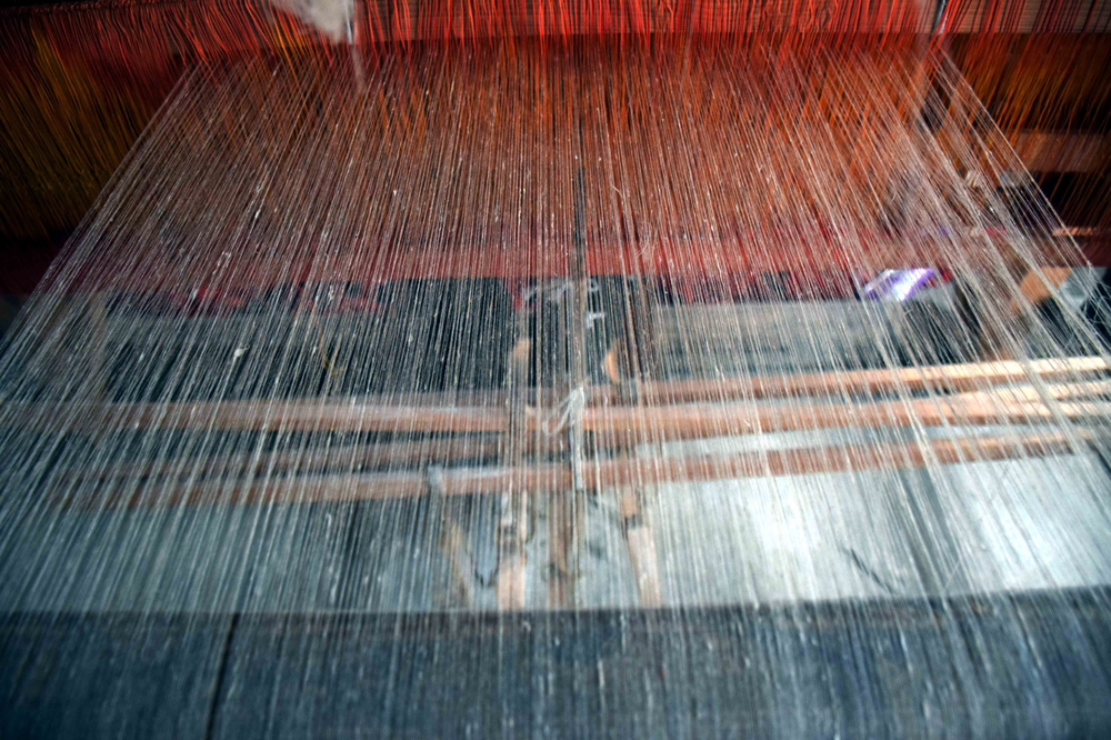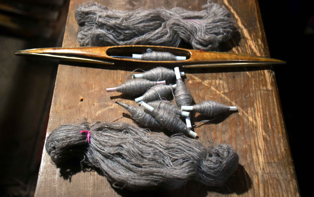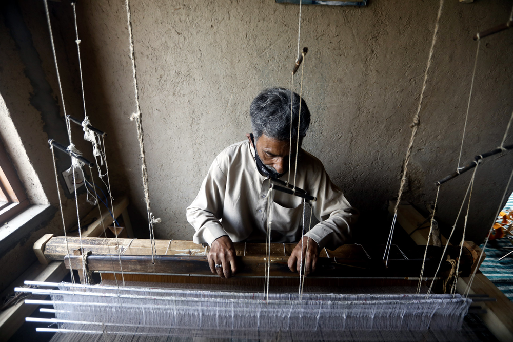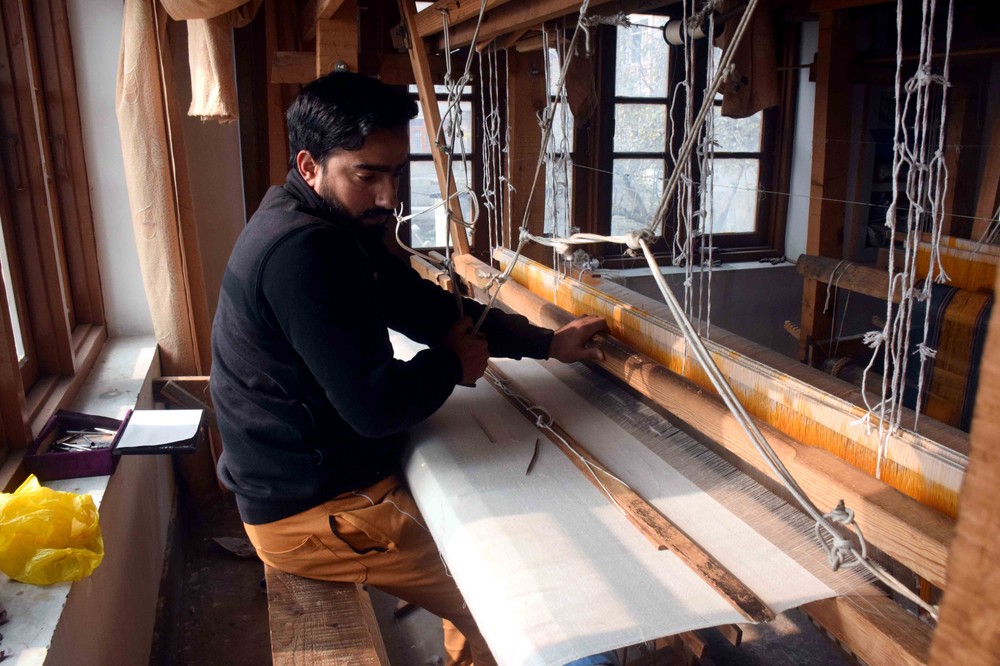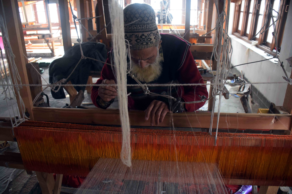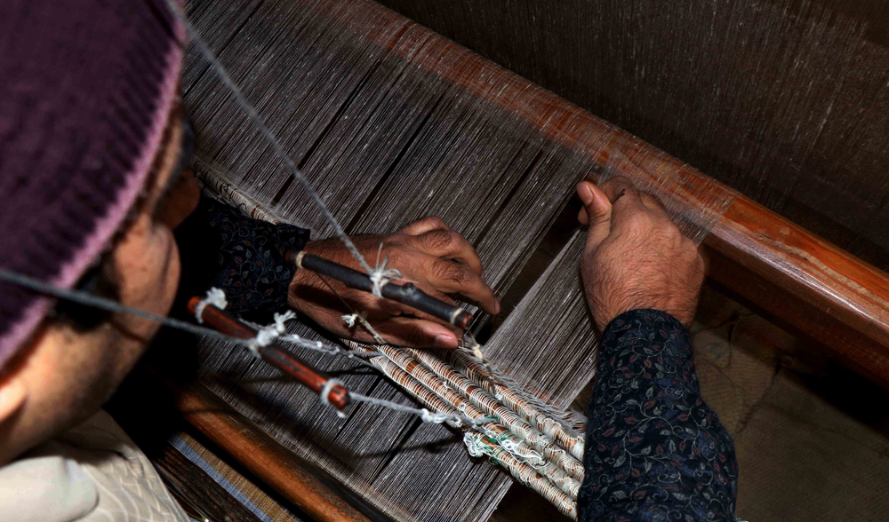The weaving process comprises the following key steps: 1)Shedding: Shedding is the process of lifting up some warp thread by the harness or loom to create a way for inserting the weft; 2) Picking: Inserting the weft yarn; 3) Beating up: Moving forward the weft yarn to keep it in line or close to the preceding weft yarn. Artisans use a weft yarn horizontally at precise angles to the warp. The alternating movement of the warp and weft is what creates and differentiates one weaving from another even when using the same base fiber.During the step of shedding, artisans add the design components into a shawl. They create beautiful patterns by selecting the yarns to lift up at the precise time when inserting the desired weft under them. Pashmina shawls have a glossy look due to its tapestry weaving that has a glistening effect. Overall, it is an incredible art of weaving and Winding of Yarn: The yarn after drying in sun is again wound on wooden spindles. This process is called Tulun in Kashmiri. The weaver works works the loom, simultaneously with his feet and hands. This wool is collected by “Herders” during the spring season and it grows back till the time winter sets in. One goat sheds approximately 80–170 grams (3–6 oz) of the fibre. A traditional producer of pashmina wool in the Ladakh region of the Himalayas are a people known as the Changpa. Raw pashmina is exported to Kashmir. All steps, from combing (removing impurities and guard hair, and aligning fibers) and spinning, to weaving and finishing, are traditionally carried out by hand by specialized craftsmen and women. The major center of pashmina fabric production is in the old district of the city of Srinagar. The approximate time put into producing a single traditional pashmina stole (70x200cm) is 180 hours.