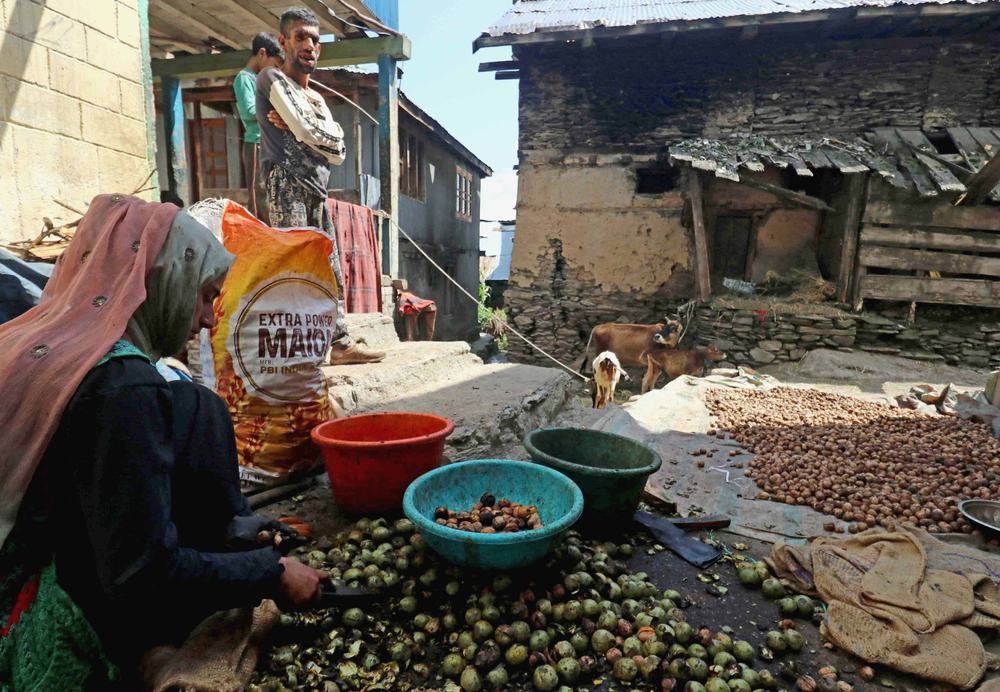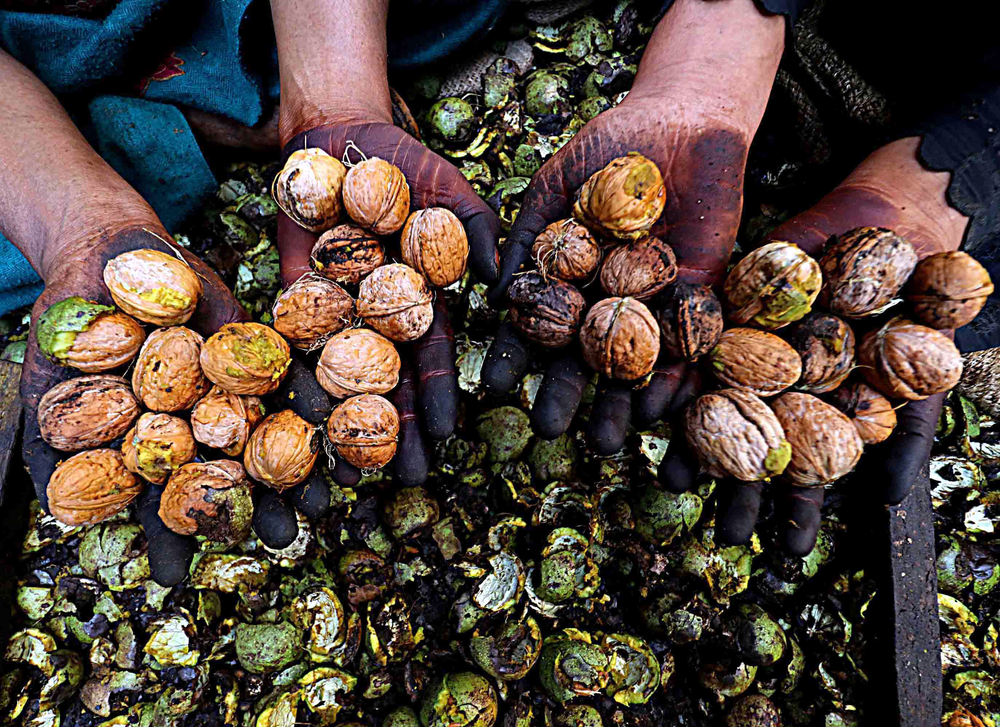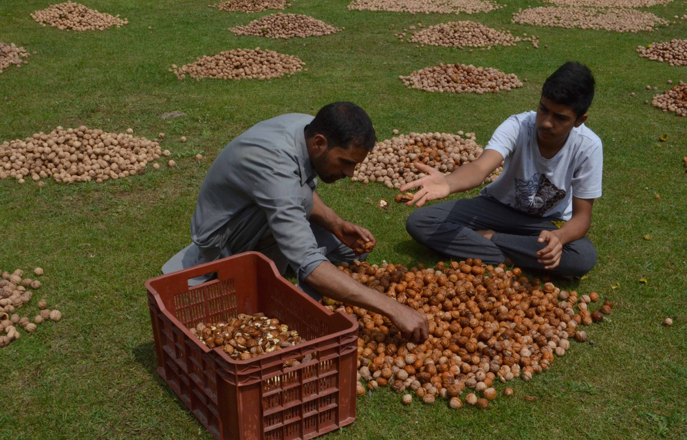 Freshly shelled walnuts. Peak harvesting season of the Valley’s best walnuts. Walnuts of Kashmir are popular across India and even exported around the world.