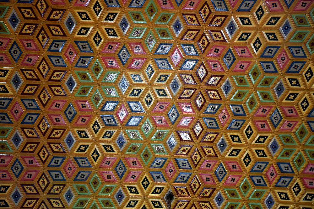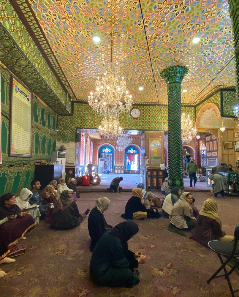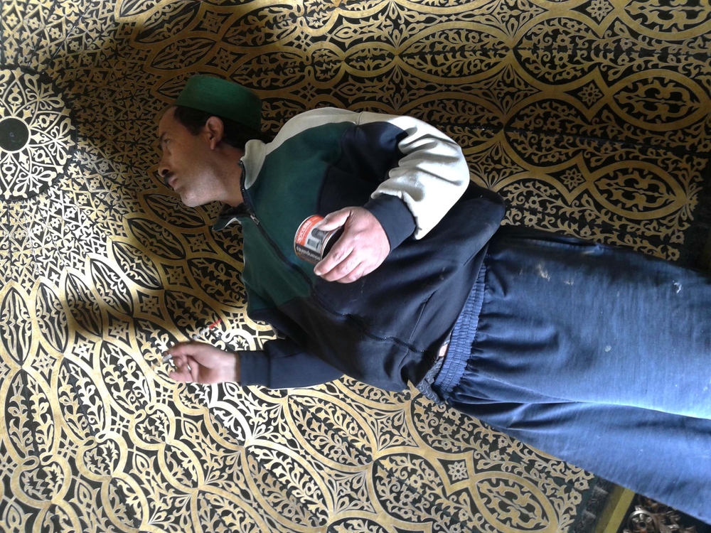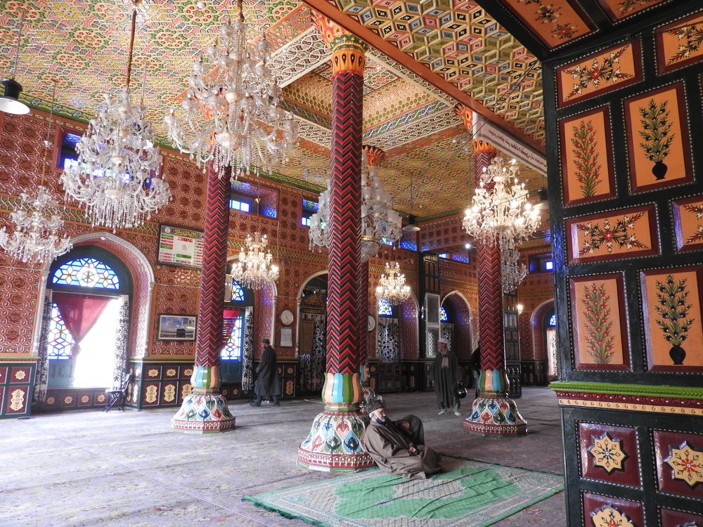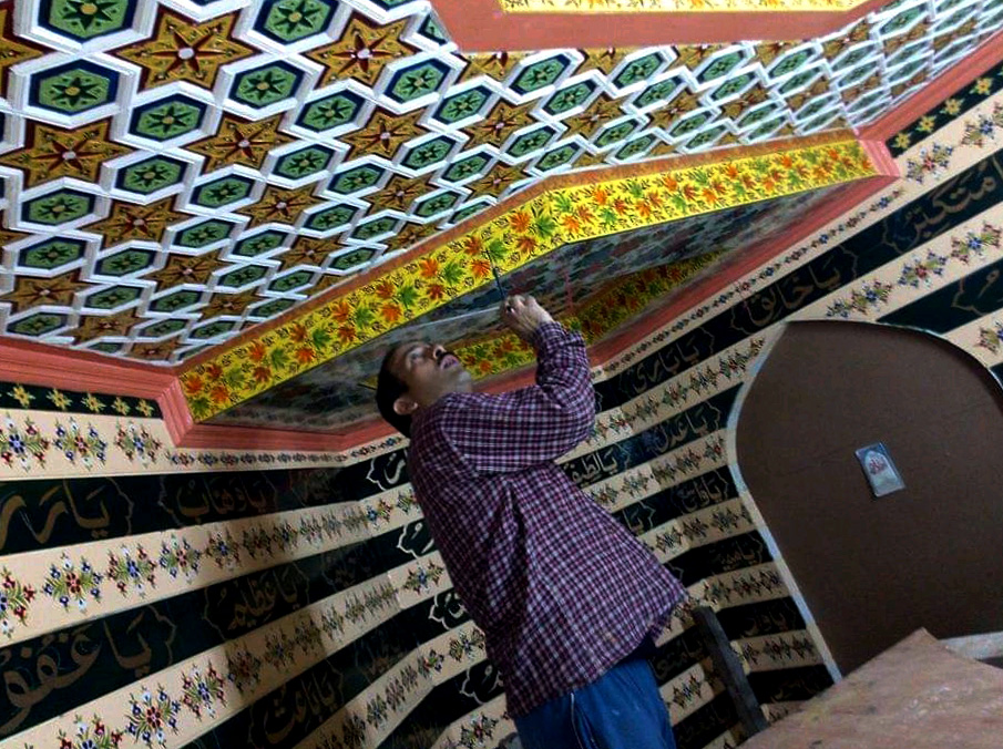 During the Mughal era, its use was extended to include many items of home furniture that were made in Kashmir. Many notable objects of this type are exhibited in museums in many parts of the world. The basic method followed was to apply the papier-mâché on wood work, and one such work can be seen in Kashmir at the Madin Sahib Mosque built in 1444, the ceiling of the Shah Hamdan Mosque, Dastgeer Sahib and the Shalimar Garden in Srinagar. This tradition of using papier-mâché or pulp on wood work to be colourfully painted with different designs has seen a revival, specially on panels used in building interiors. Some of the older designs involved intricate painting of kingfishers, maple leaves and other designs, such as “Arabesque”, “Yarkand” and “Hazara”. The credit for keeping the papier mache technique alive goes to the Shia community of Kashmir. The art got a major boost from the government in 2016, when the Nawakadal girls’ college in Srinagar introduced it in the craft curriculum.