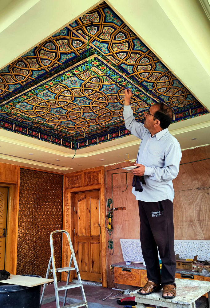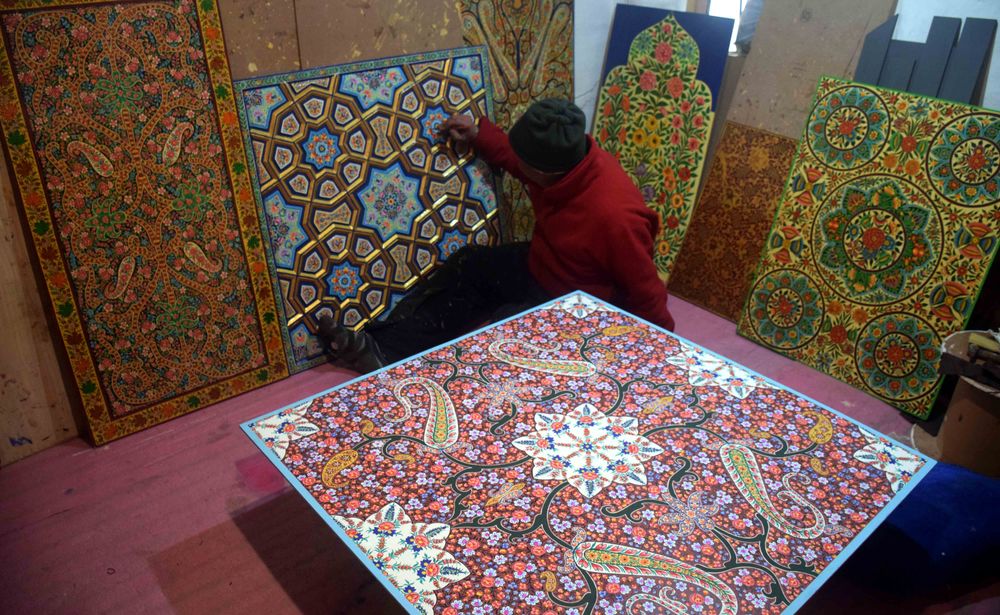 Artist Hakeem Manzoor, of Ganaie Doori, Alamgari Bazaar, has perfected the paper machie craft by mixing two art forms, that is of the intricacy of a Kani shawl and the papier mache technique. Originally used in shrines, the technique is now becoming popular in residential interiors too.